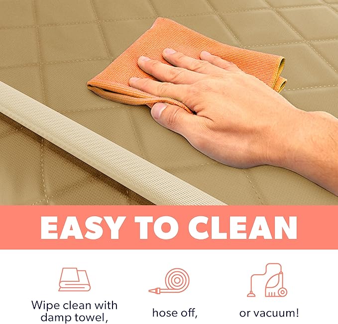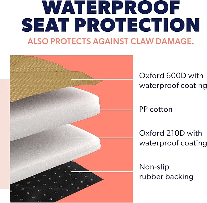 - EASY-TO-CLEAN MATERIALS â Active Pets dog front seat cover is made exclusively from super easy to clean materials! Crafted with a top layer of premium 600D Oxford waterproof cotton and a middle layer of Oxford 210D with waterproof coating, your seats will remain clean no matter what. In case your pet has dirtied the seat cover, just wipe with a damp cloth or vacuum it and it will be new again in a minute!