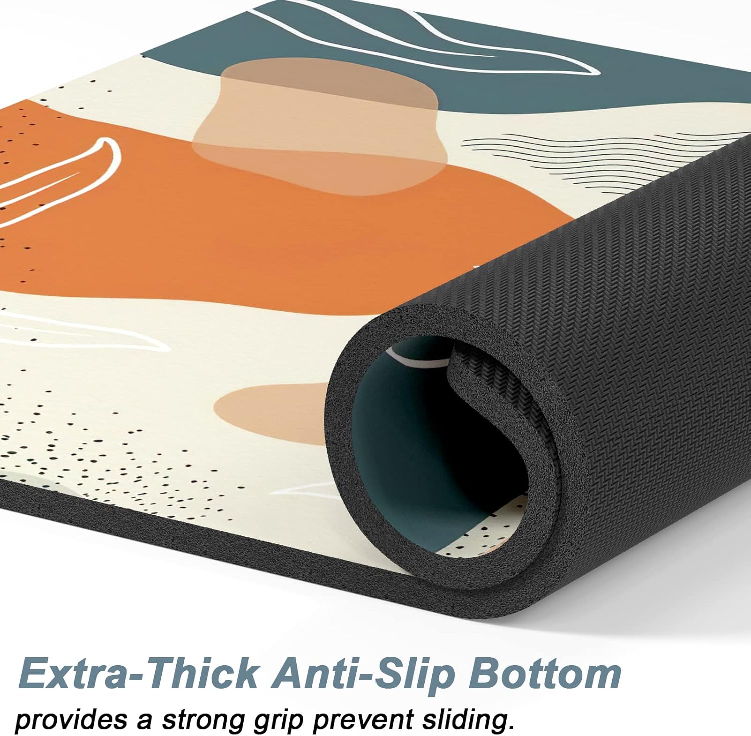 Rnivvi Dog Food Mat, 12" x 19" Boho Absorbent Dog Cat Bowl Mat for Food and Water, Cute Anti-Slip Rubber Pet Feeding Rug Protect Floors, Puppy Placemat for Feeding & Watering Supplies, Abstract Leaves