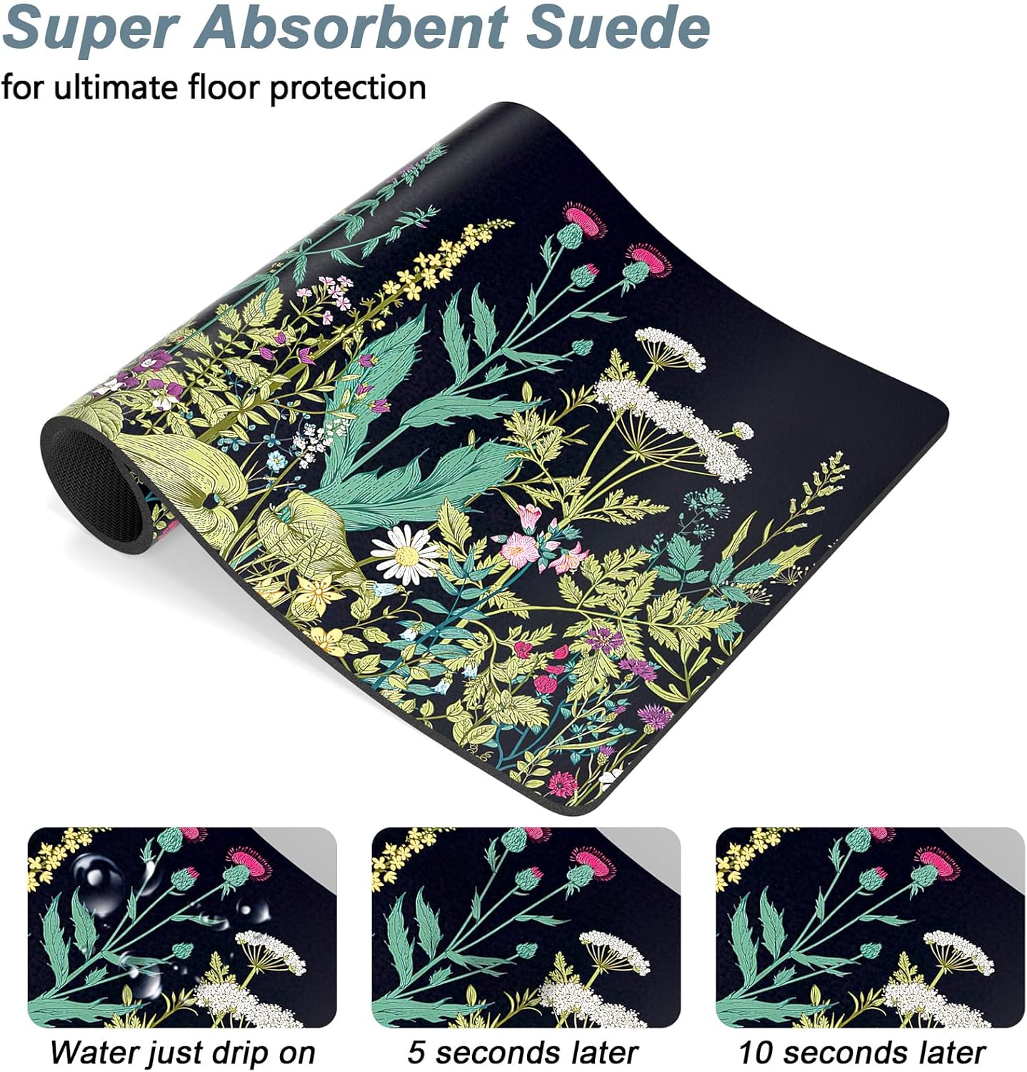 Rnivvi Dog Food Mat, 12" x 19" Flower Absorbent Dog Cat Bowl Mat for Food and Water, Cute Anti-Slip Rubber Pet Feeding Rug Protect Floors, Puppy Placemat for Feeding & Watering Supplies,Black Floral