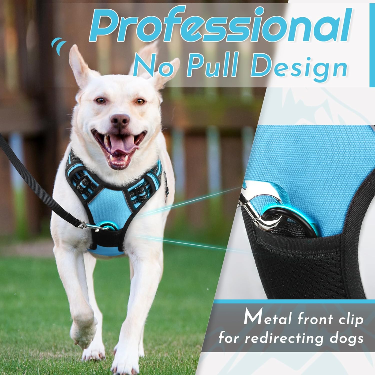 Eagloo Dog Harness Large Breed, No Pull Service Vest with Reflective Strips and Control Handle, Adjustable and Comfortable for Easy Walking, No Choke Pet Harness with 2 Metal Rings, Sky Blue, XL