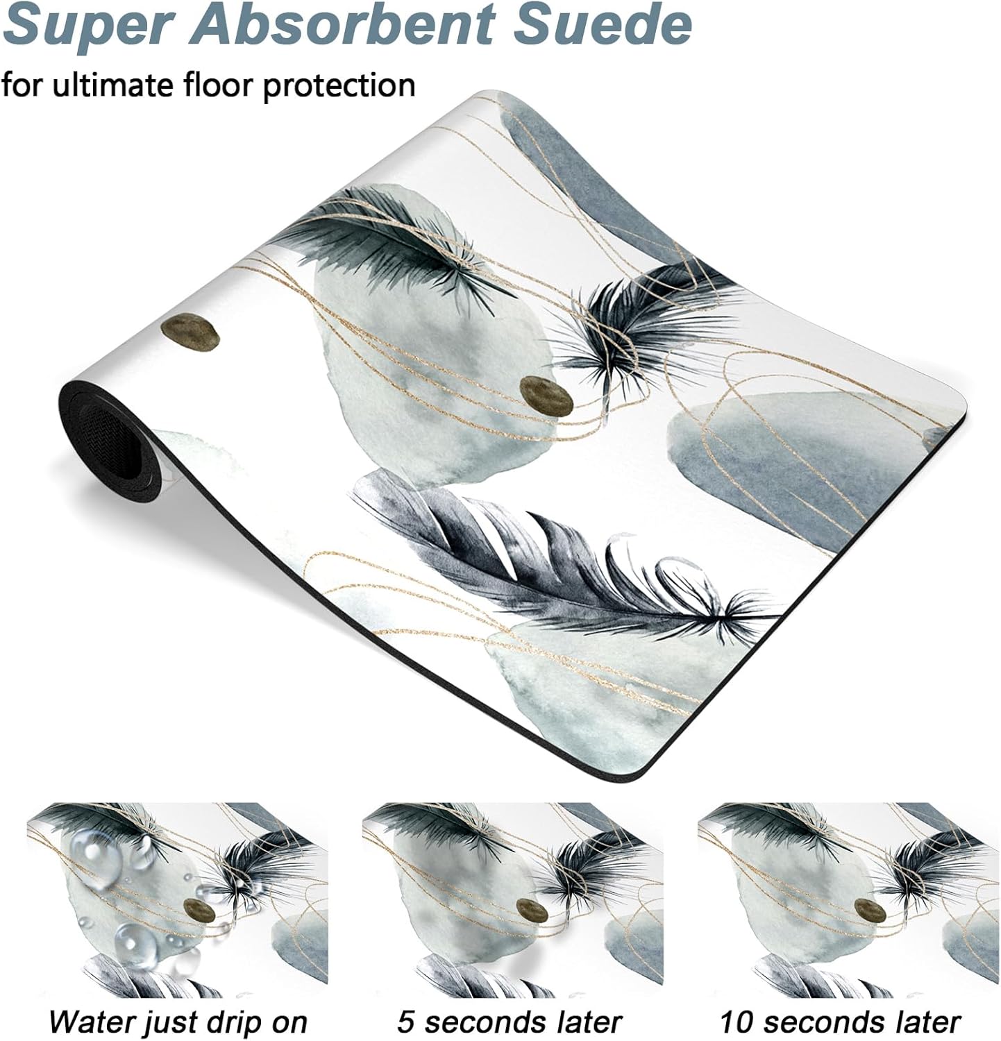 Rnivvi Dog Food Mat, 16" x 24" Absorbent Dog Cat Bowl Mat for Food and Water, Cute Anti-Slip Rubber Pet Feeding Rug Protect Floors, Puppy Placemat for Feeding & Watering Supplies, Abstract Plume