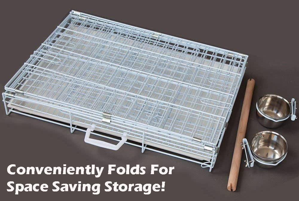 Large Portable Durable Metal Travel or Veterinary Easy Collapsable Parrot Bird Carrier Beaks Proof Carrier Cage Easy Clean Pull Out Tray Stainless Steel Feeder Bowls Natural Wooden Perch