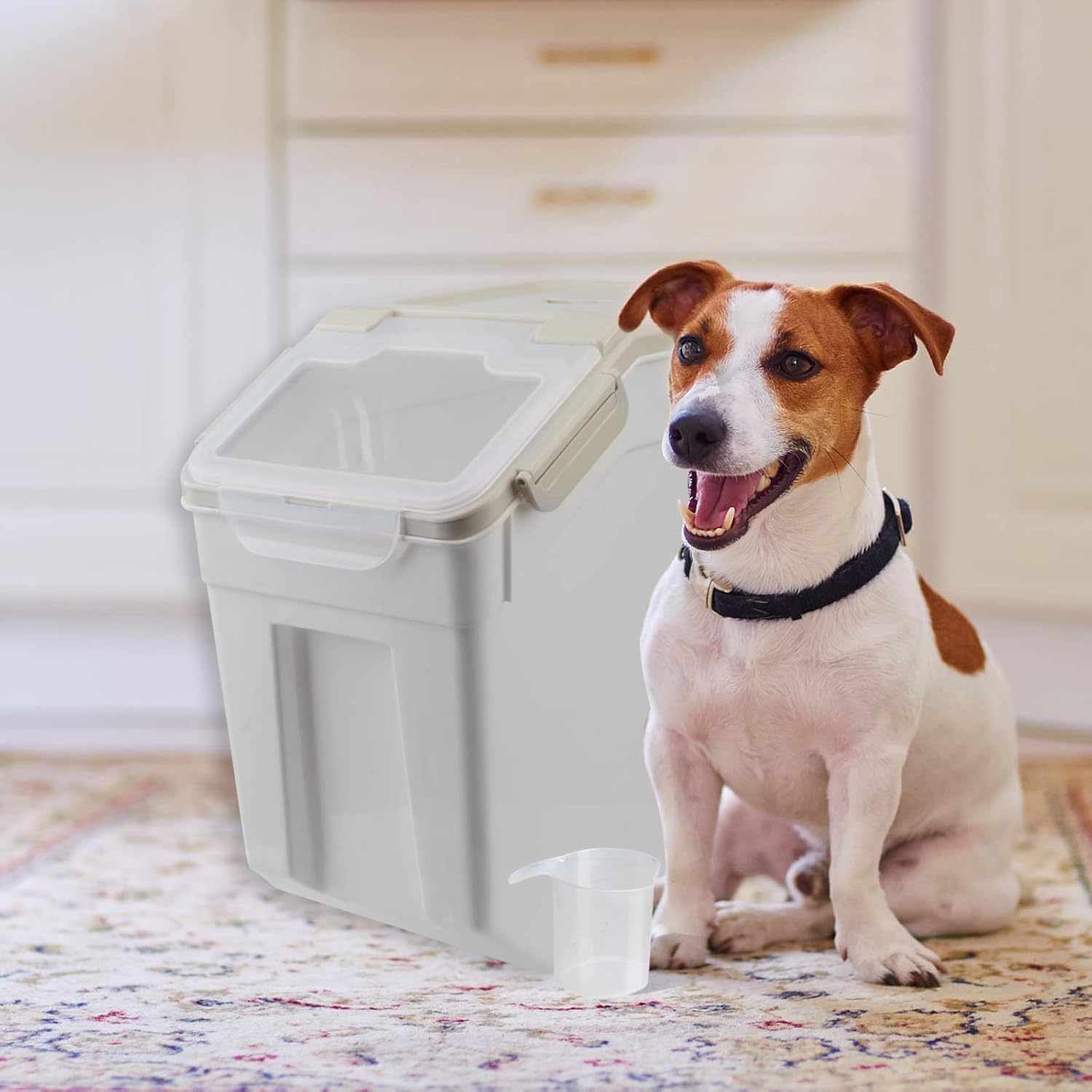 AnRui Dog Food Storage Container with Scoop, Large Airtight Plastic Pet Dog Cat Dry Food Bin, Cereal Grain Organizer Box for Rice, Flour, Snack, Baking Supplies, Kitchen Pantry, 20lb, Grey