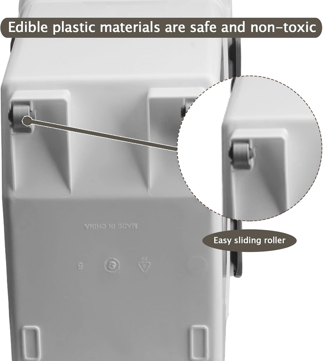- 【Easy To Use】The front of the plastic dog food storage container has a groove and with a large inclined opening, which make it very easy to take out and fill. With transparent lids, the remaining amount of the barrel at a glance; There are 2 small wheels in the back, you only need to lift the front to pull out it easily.