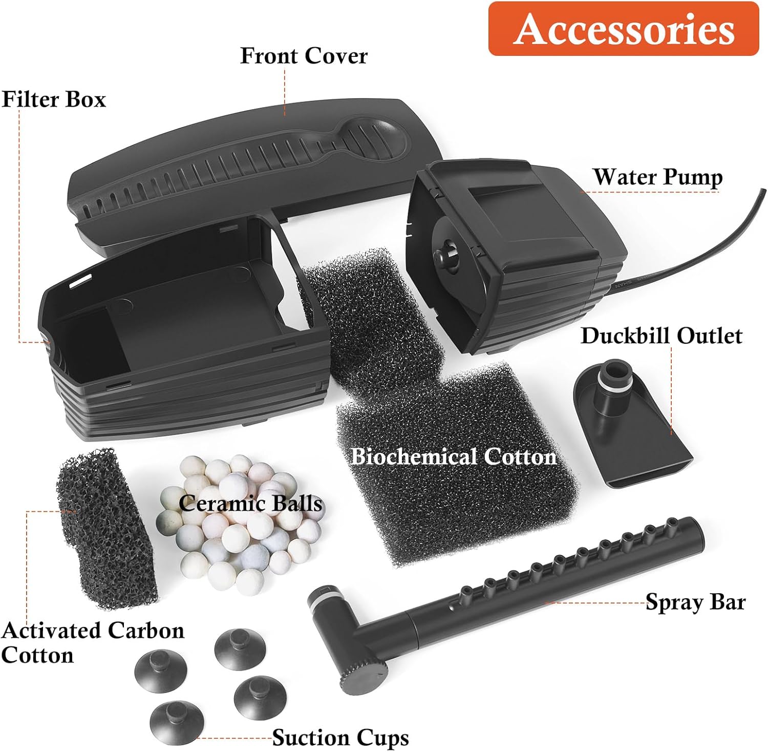 - 【Silent Filter】For this new aquarium filter, we have improved the internal structure of the pump to further improve the sound insulation. Once you put the filter in the water and turn it on, you can barely hear the motor, only the sound of the water spraying out. The noise level is <35dB.