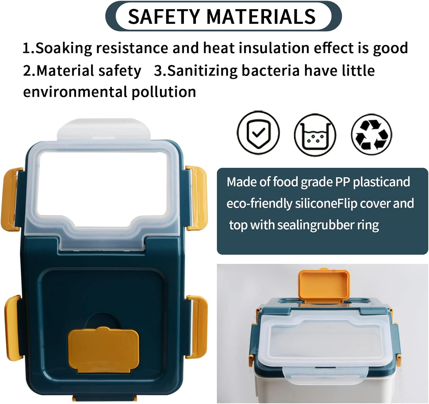 - Airtight silicone sealed cover with flip lid and locking closures, keeping your food clean and dry. Ensuring your ingredients always stay fresh.