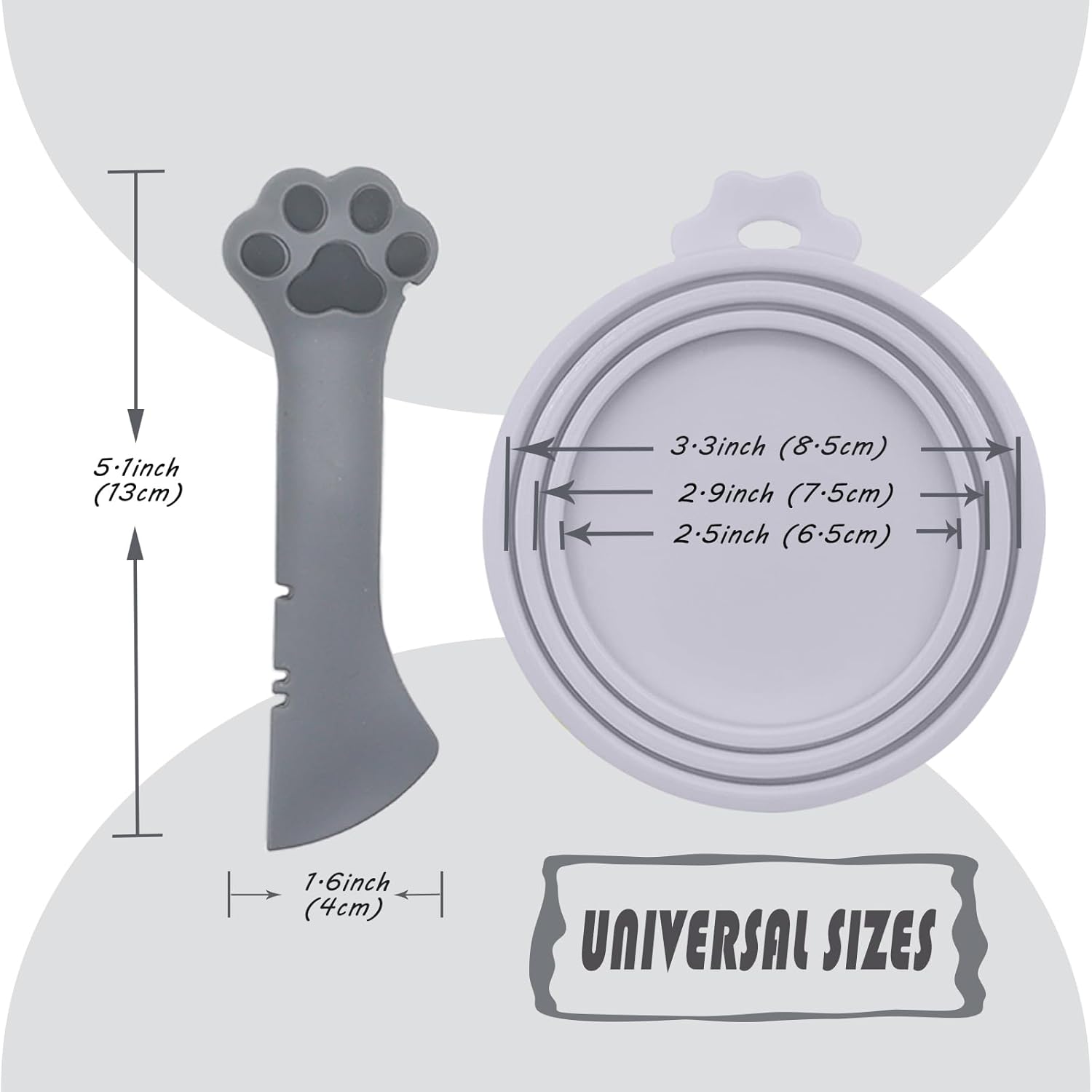 Pet Food Can Spoon & 3 Pcs Can Covers | Cute Paw Shape Opener Spatula Cat Wet Food Spoon | Universal BPA Free Silicone Can Lids & Spoon for Dog Cat Cans(Grey)