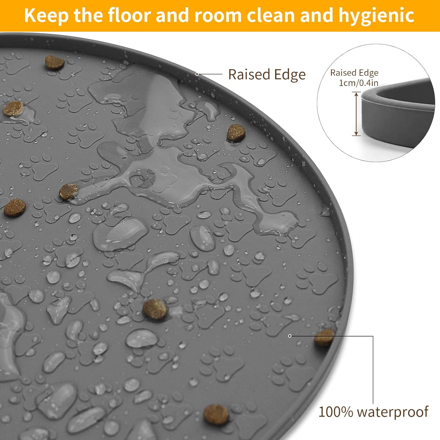 - 100% Waterproof and Anti-Slip: Our dog bowl mat with high-lip edges. Leak-proof pet placemats can prevent food and water overflow, and protect the floor. Prevent pets from eating contaminated food. Non-slip silicone mat keeps the bowl in place.
