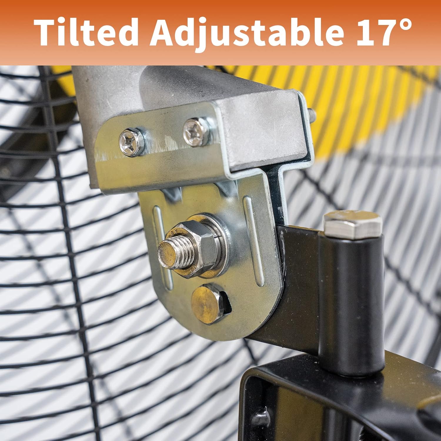- 【Tilting & Oscillating】: Keep the head fixed in one direction or 80° oscillating operation by enclosed easy click bottom. It also can be tilted vertically for optimum airflow or downward 17 degrees. Cool the whole room covering 50 feet of indoor & outdoor space comfortably.