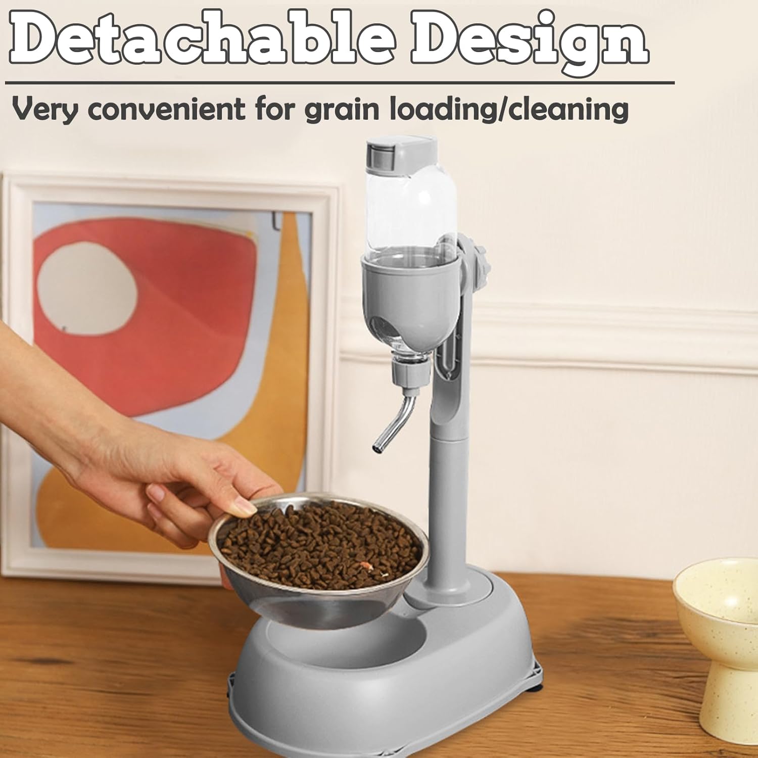 - Automatic Dispenser Feeder: Our dog water bottle and bowl stand convenience of all in one feeding and watering; it is convenient for your pet dog to drink water in the water bottle; the base underneath is a pet bowl