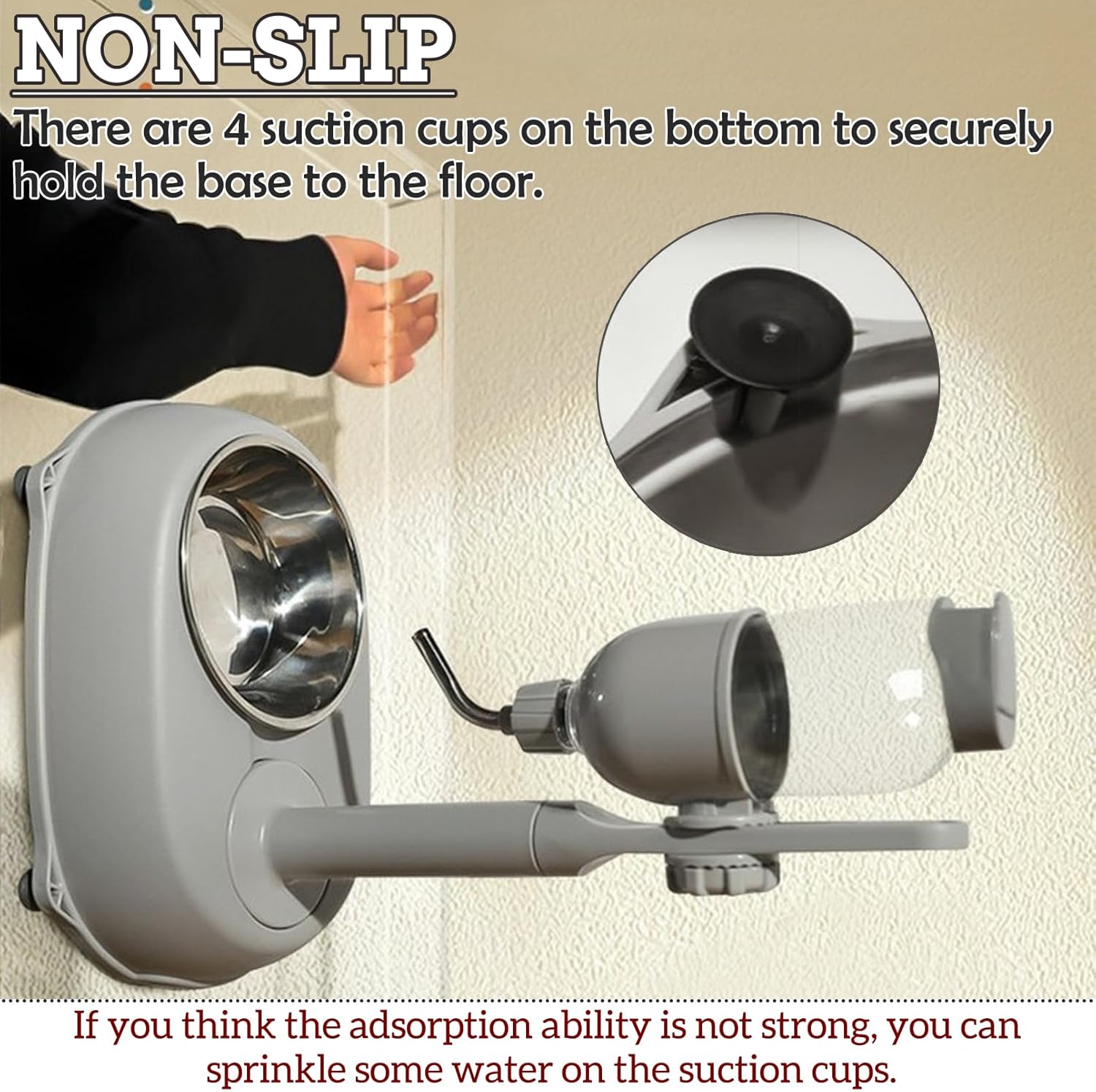 - Suction Cup Bottom Design: There are four strong suction cups on the bottom to keep this water bottle firmly on the ground without being pushed away by your pet. Detachable design, easy to change water and clean