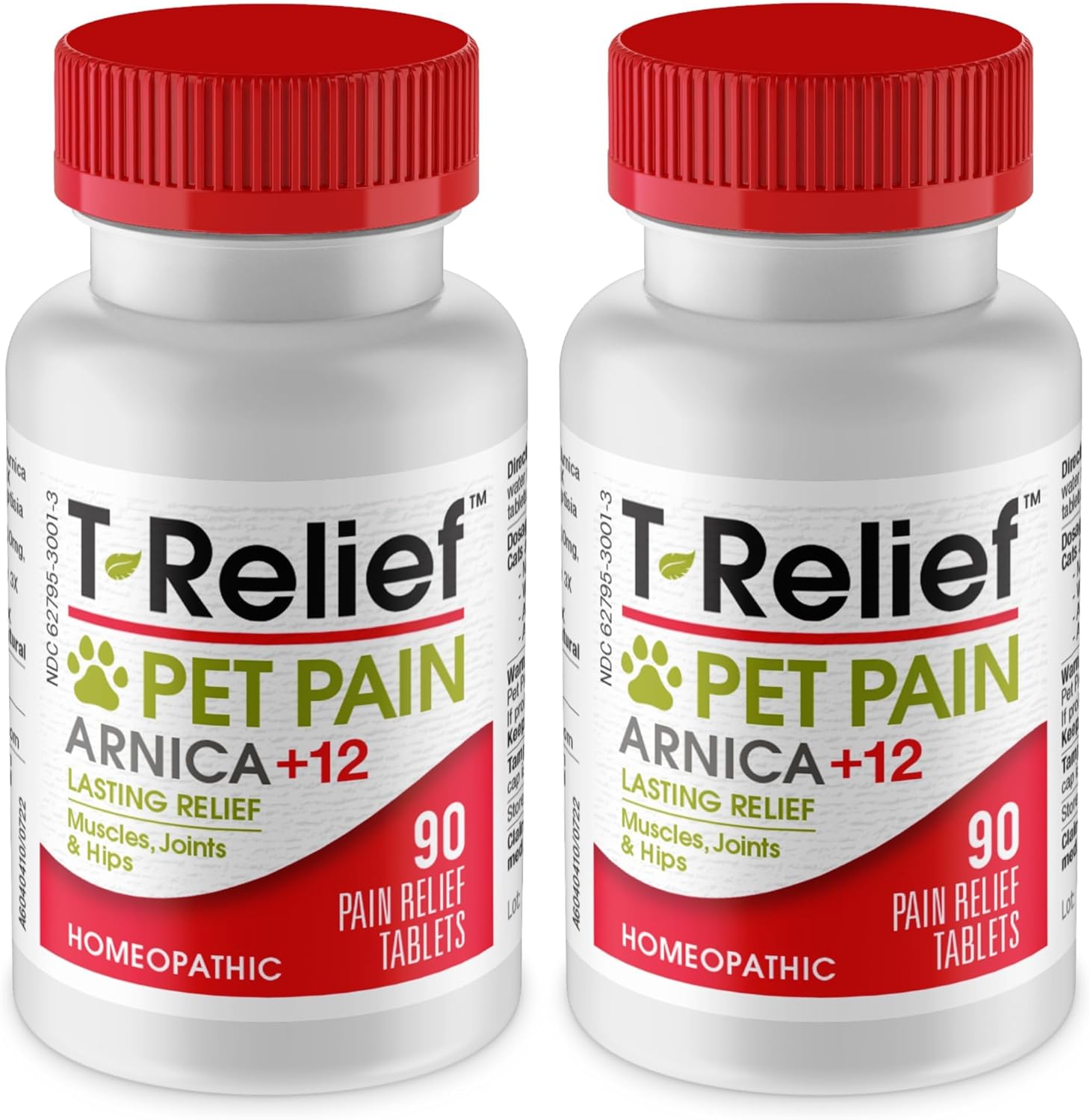T-Relief Pet Pain Relief Arnica +12 Powerful Natural Medicines Help Ease Muscle Joint & Hip Pain Soreness Stiffness & Injuries Max Fast-Acting Soother for Dogs & Cats - 90 Tablets (2 Pack)