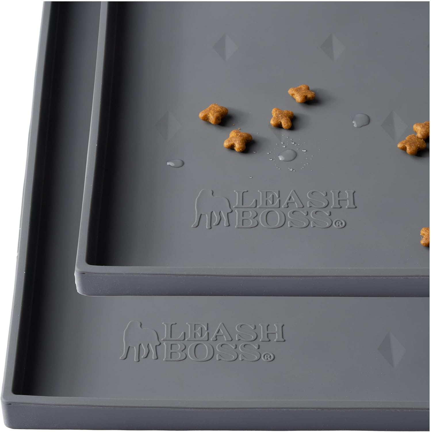- Dish Washer Safe Mat: Prevent pet messes with the Leash Boss Waterproof Pet Food Mat with raised edges. Protect floors from pet bowls, gravity water dispensers, fountains, and elevated feeders.