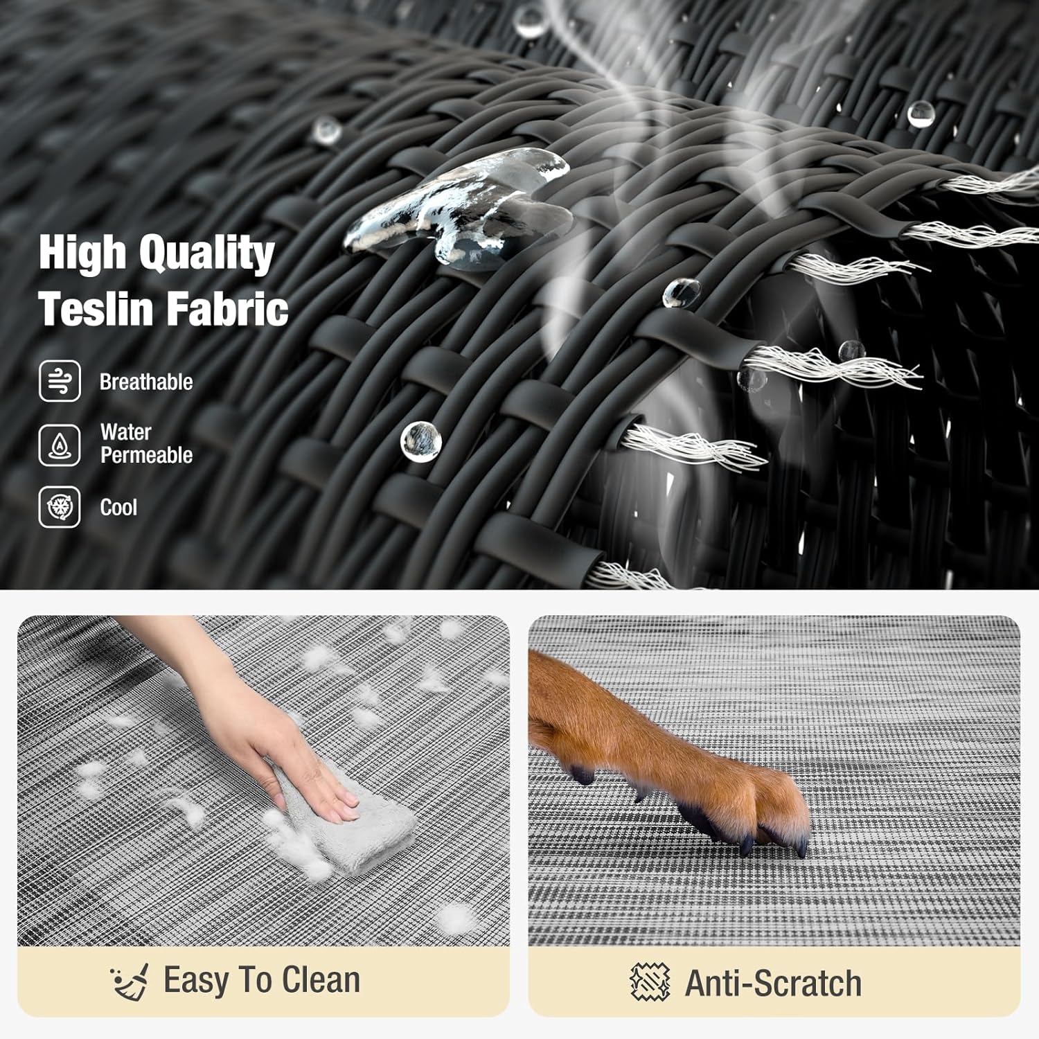 - All-Season Comfort: The Teslin Mesh mat not only allows the air to flow, but also allows the water to penetrate, keeping your pet cool in summer; The elevated dog bed lifts your dog 8.2 inches off the hard ground, mud or wet grass, alleviating joints pressure and keeping health