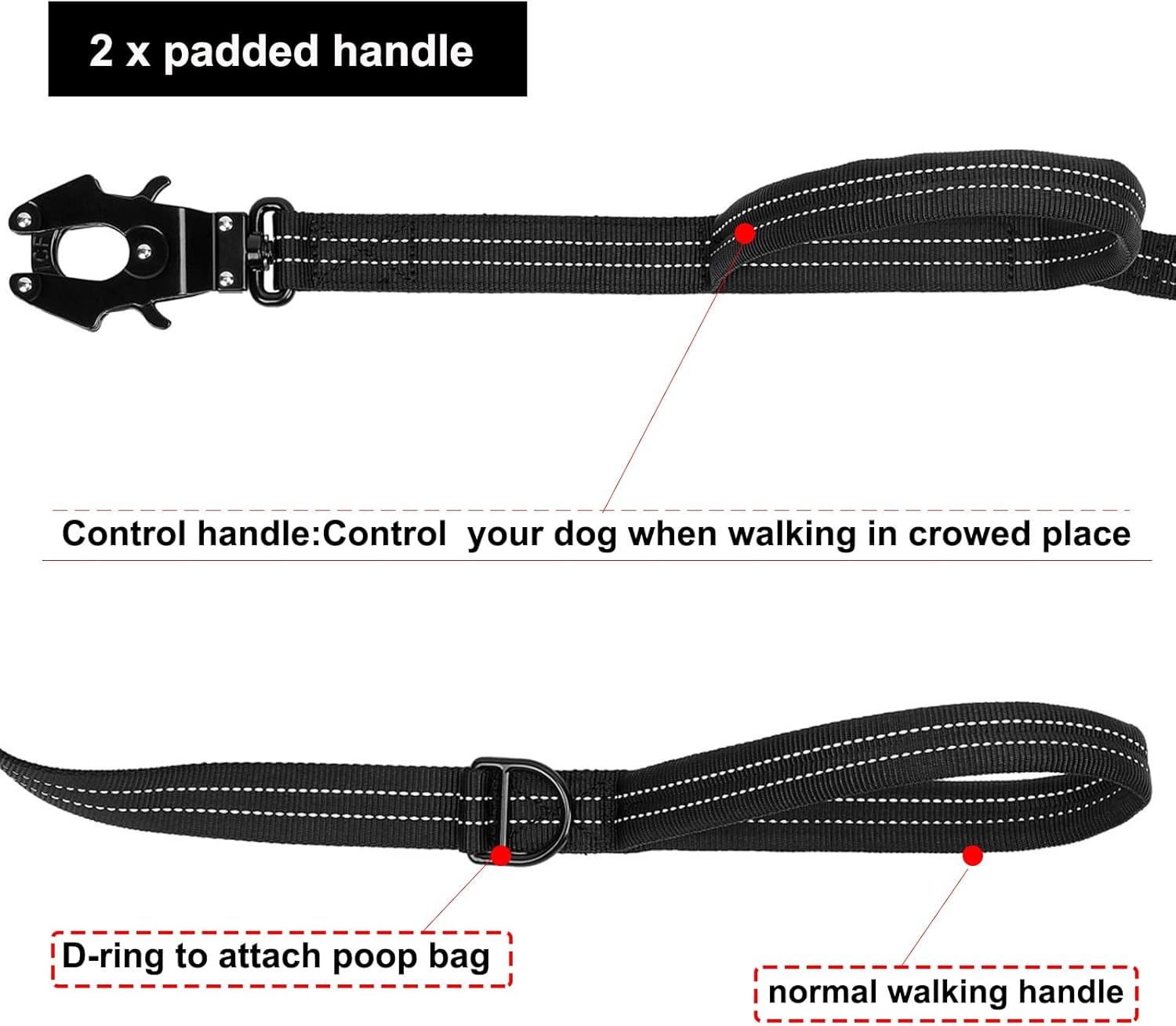 ICEFANG Tactical Dog Leash,K9 Training Walking Bungee Lead with 2 Control Handle,Heavy Duty Quick Release Metal Clasp,Hands Free D-Ring for Medium Large Dogs (6ft,Reflective Black)