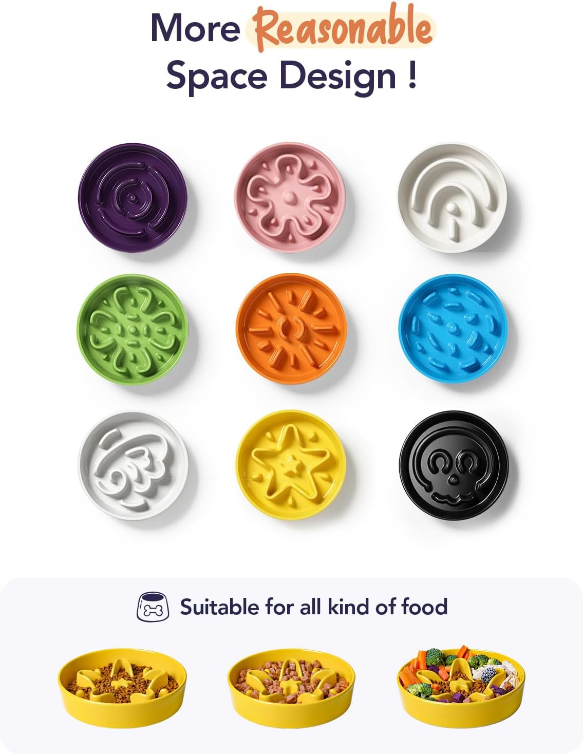 - Slow Down Eating, Bring Dog A Healthy Diet: Fast-eating dogs experience bloat, regurgitation, and obesity easily. Our slow feeder dog bowl design with the ridges and maze pattern helps your dog to eat slower than 47 times. Your dog could change his overeating behavior through a challenge and fun mealtime