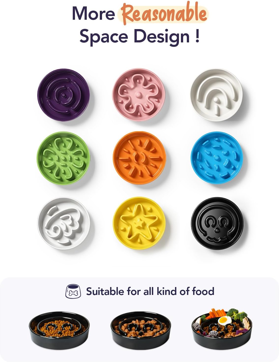 - Slow Down Eating, Bring Dog A Healthy Diet: Fast-eating dogs experience bloat, regurgitation, and obesity easily. Our slow feeder dog bowl design with the ridges and maze pattern helps your dog to eat slower than 25 times. Your dog could change his overeating behavior through a challenge and fun mealtime