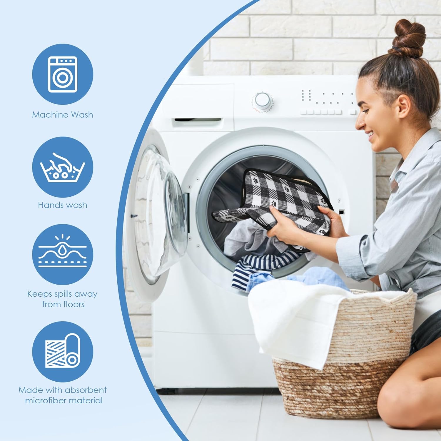 - Material: Microfiber, with high water absorption, pet drink water, quickly absorb splash water, protect the room floor clean and dry.