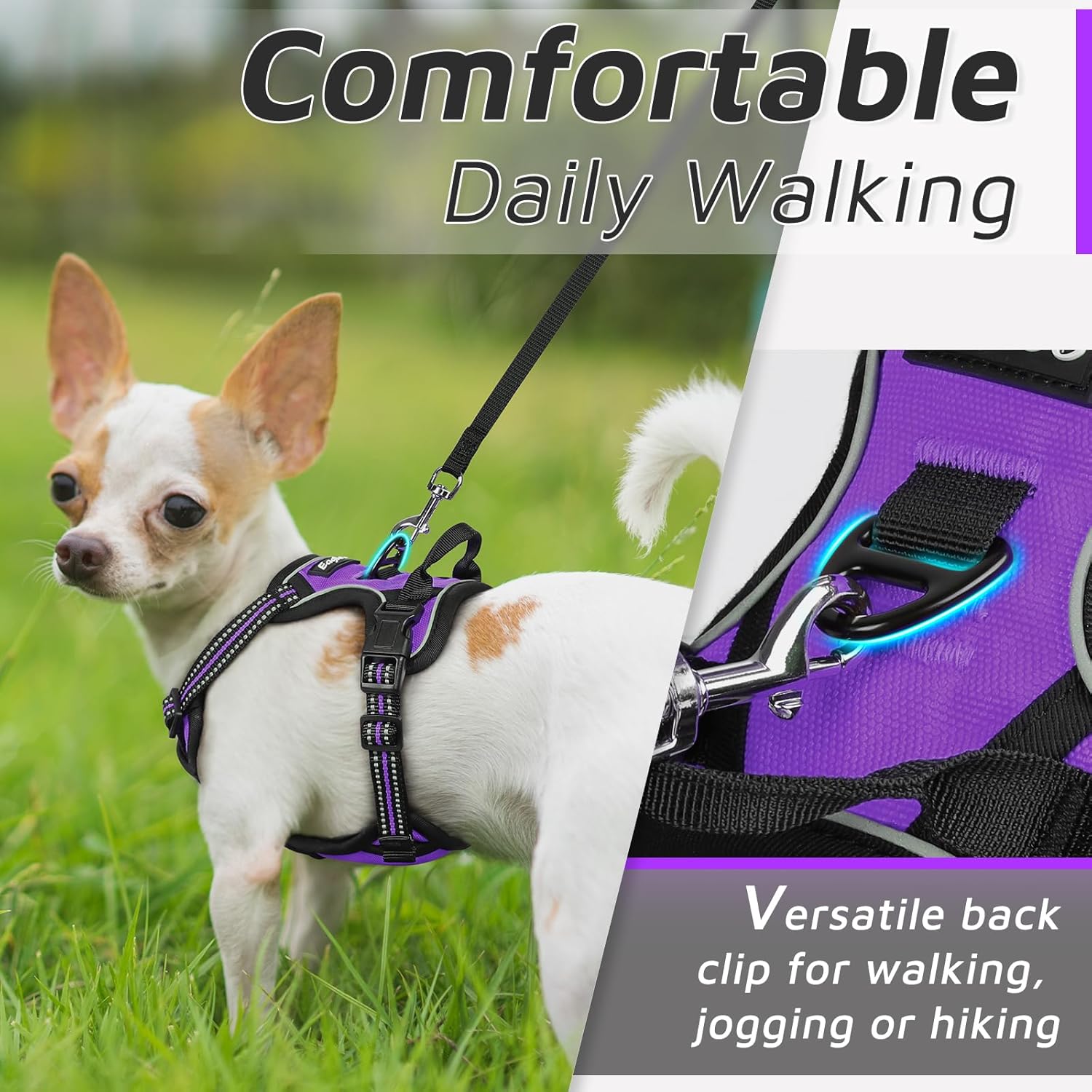 Eagloo Small Dog Harness No Pull, Service Vest with Reflective Strips and Control Handle, Adjustable and Comfortable for Easy Walking, No Choke Pet Harness with 2 Metal Rings, Purple, XS