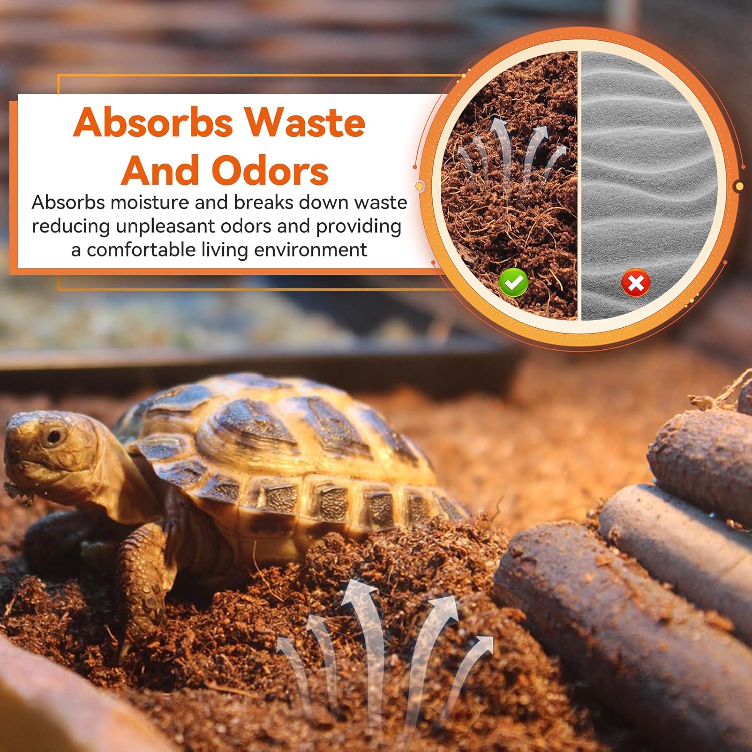 - Natural Material: Reptile substrate is made of natural coconut fiber, breathable and maintain a proper humidity environment; It contains no dirt, harmful chemicals or other impurities, ensuring the safety and comfort of your pets; It will naturally decompose after use and you can dispose of it outside your garden area without harming the environment