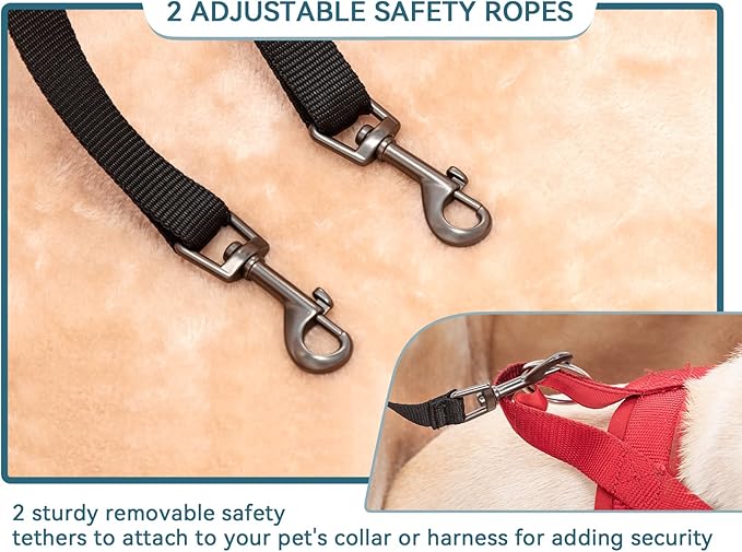 - [Safety First] The dog car seat medium sized dog is designed with an adjustable lanyard, a safety clip, and 2 patent buckles to secure the seat and keep it from sliding in the car. And comes with 2 upgraded bigger safety ropes to avoid pets jumping out, It lessens the likelihood that you will become distracted while driving.
