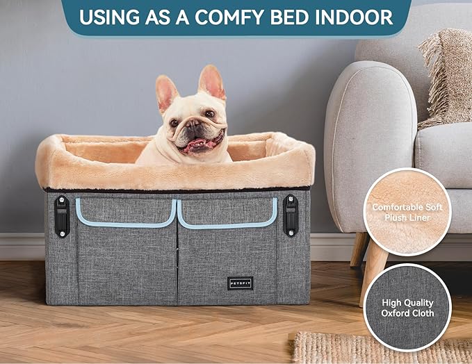 - [Thoughtful Design] The dog car seat medium sized dog is made of sturdy Oxford and comes with a washable pad. The upgraded mat has soft edges, suitable for pets to lay their head over the pet car seat for rest and relieve nervousness or carsick. With the dog booster car seat’s window view, your anxious dog can enjoy travel without worry.