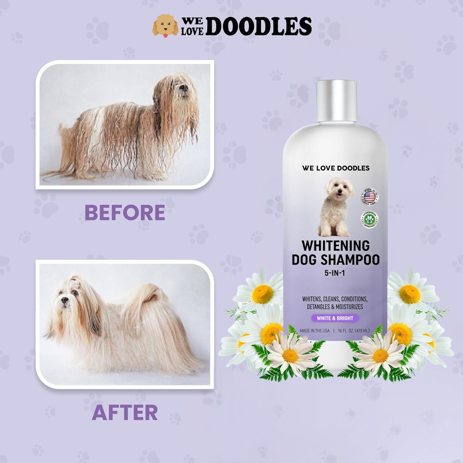 Whitening Dog Shampoo | Made in USA | Brightening Dogs Fur | White & Bright Hair | Removes Stains & Discoloration [We Love Doodles]