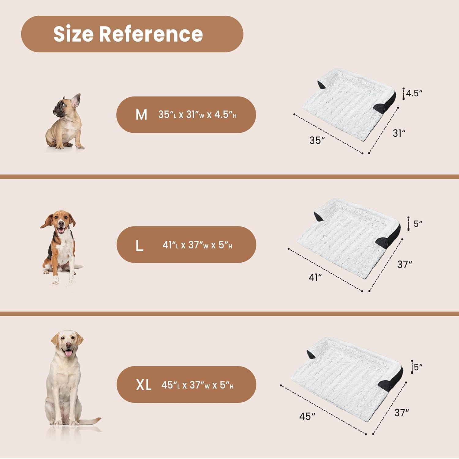 Calming Extra Large Dog Couch Bed, 45 x 37 inch Waterproof Memory Foam Dog Bed for Couch, Durable Fluffy Fuzzy Dog Bed Mats with Washable Removable Cover Protector for Sofa, Bedside - Grey