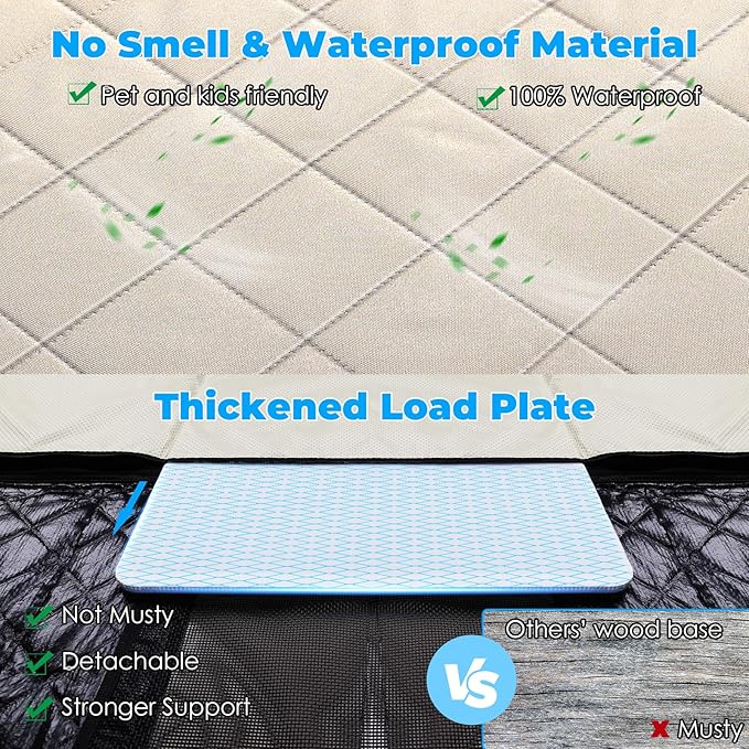 - No Smell Material: The dog car seat cover for back seat without terrible smell is friendly for pets and children. In an enclosed car space, smell-free design is also important to keep you focused and driving safely, but competitors ignore this. The thickened PP hollow board plate is more durable than others' wood base