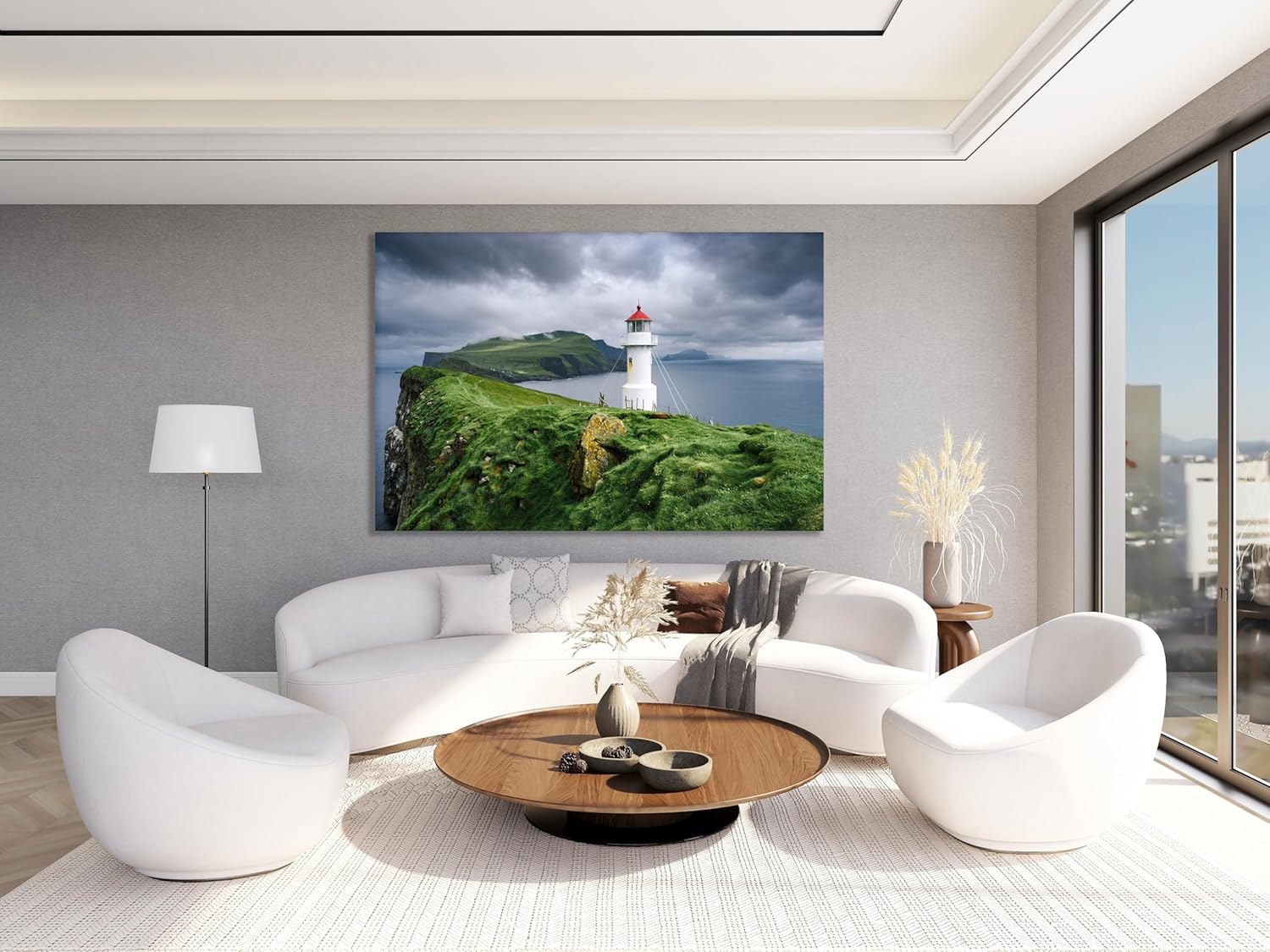 Nature Wall Art Prints - Ocean Forest Mountain Lake Canvas Landscapes - Small to Extra Large Living Room Bedroom Kitchen Bathroom Décor (Stormy Sky Lighthouse, 16L" x 24W")