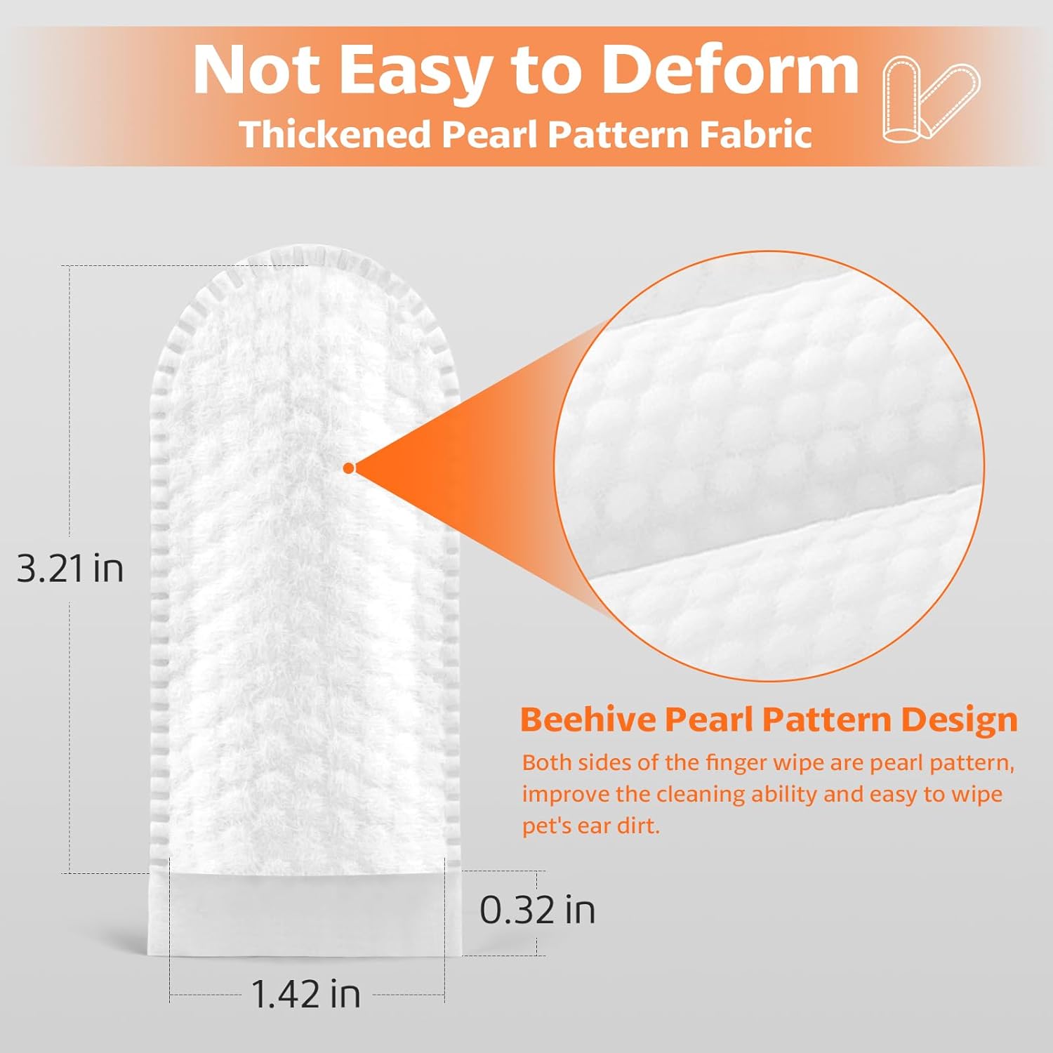 - 【Effortless Cleaning, No Fuss】How easy is it to clean your pet's ears? Simply slip the pre-moistened, soft finger sleeve onto your finger! The intuitive design makes reaching and wiping all parts of the ear quick and stress-free for both you and your furry friend. Disposable for ultimate convenience.