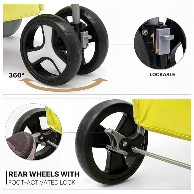 MoNiBloom Foldable Pet Stroller with Waterproof Cover, 3-Wheels Dog Strolling Cart for Small/Medium Dogs and Cats with Storage Basket and Cup Holder, Breathable and Visible Mesh for All-Season, Yellow