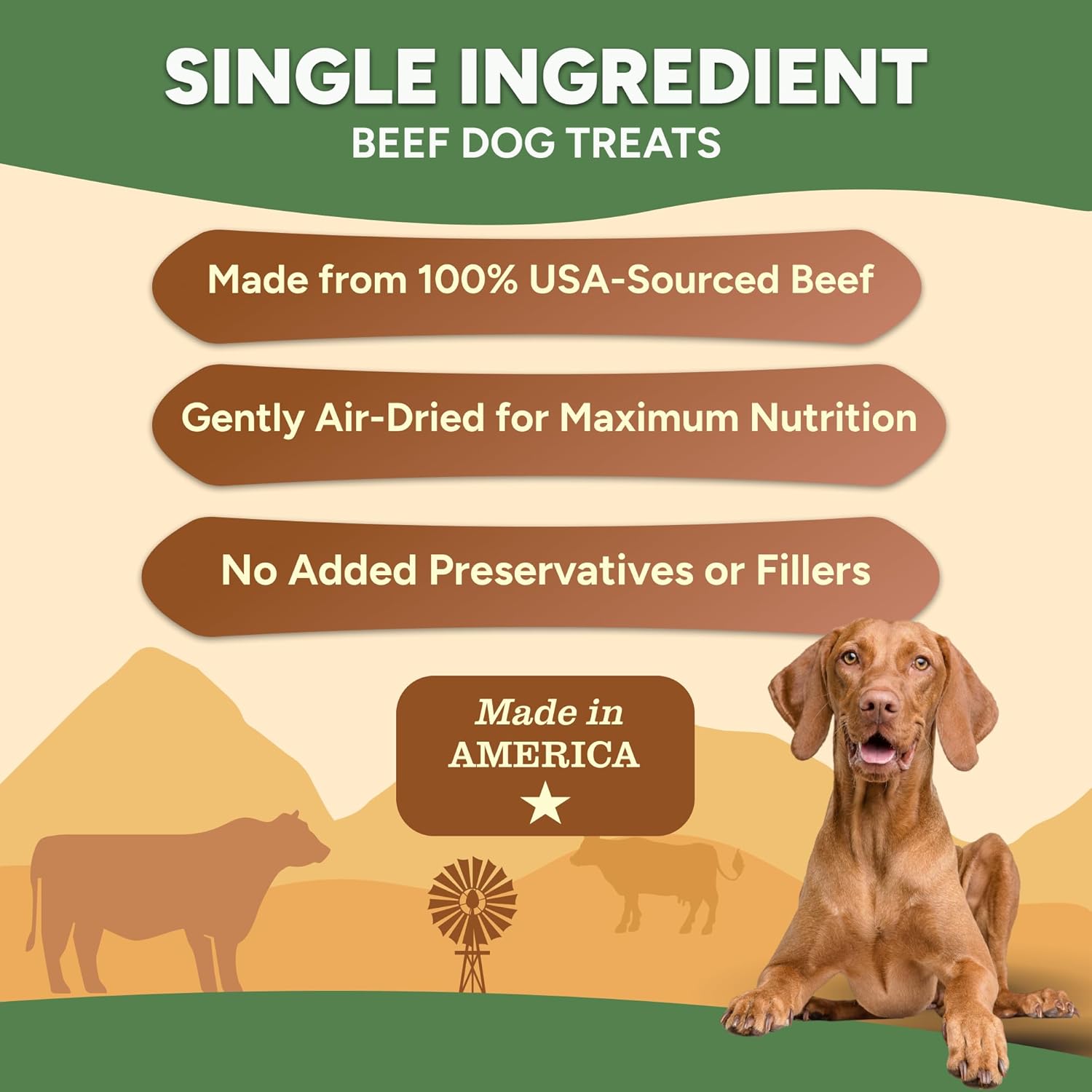 - MADE IN USA FROM FAMILY-OWNED FARMS: Sourced exclusively from trusted family farms in the USA, our natural beef treats for dogs contain no preservatives, additives, or by-products—just clean, high-quality nutrition your pup deserves.