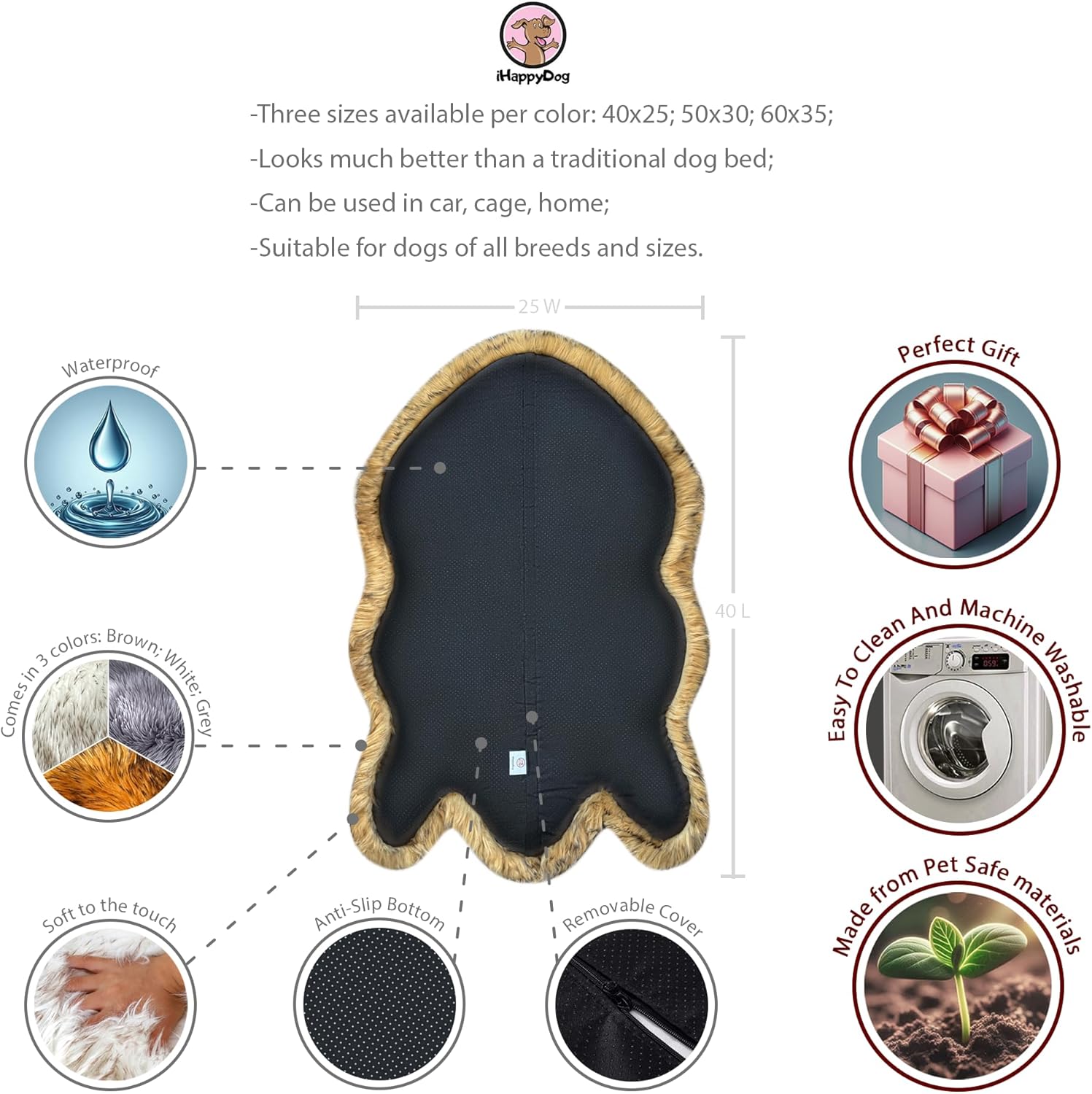 IHAPPYDOG Luxury Faux Fur Orthopedic Dog Bed, Memory Foam Dog Bed for Small, Medium, Large and XL Pets, Fluffy Pet Bed with Waterproof and Washable Cover (Brown, 40"x25")