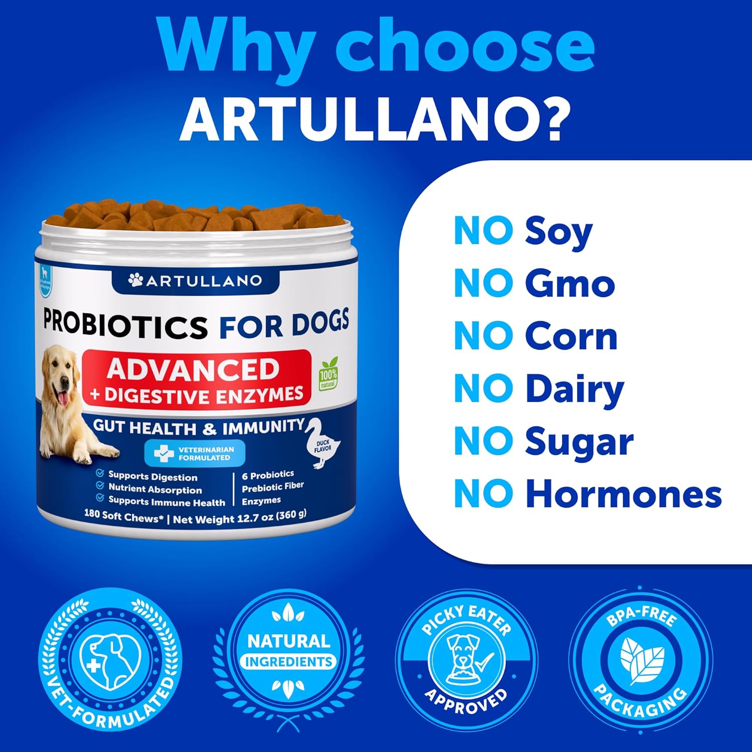 Probiotics for Dogs - Support Gut Health, Itchy Skin, Allergies, Immunity, Yeast Balance - Dog Probiotics and Digestive Enzymes with Prebiotics - Reduce Diarrhea, Gas - 180 Probiotic Chews for Dogs