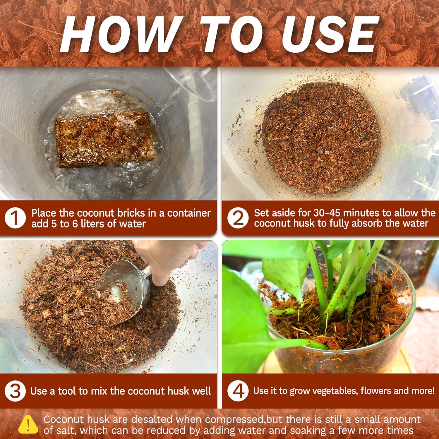 - [EASY TO USE]: Our coco chips plants are easy to use and can be mixed with other soil types to create a customized planting medium. It is also reusable and can be refreshed periodically to maintain its optimal condition. It can be used for indoor and outdoor plants, and it is suitable for a wide range of plant species, including flowers, herbs, vegetables, and succulents.