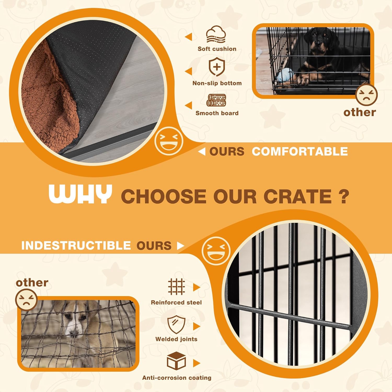 - [Enhanced Durable Design] The top panel of this dog crate table is wide and sturdy, which can hold up to 200 lb. Besides, the thickness of the steel rod and square frame reach 4mm and 16mm. Our dog cage is characterized by high strength, high hardness and more chew resistant than ordinary ones.