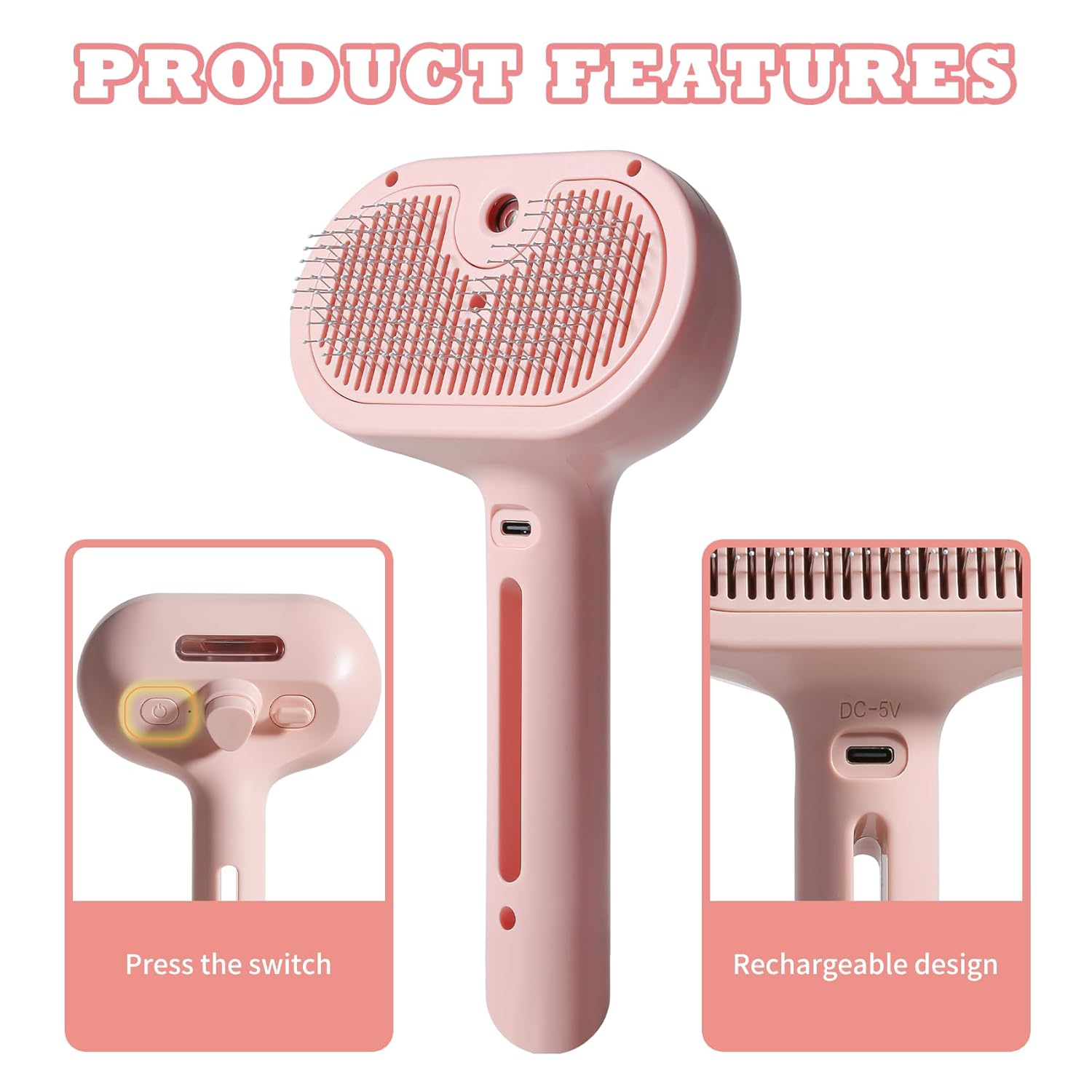 3-in-1 Steam Brush for Cats & Dogs – Hair Removal Comb with One-Click Release & Water Spray – Grooming Brush for Shedding, Long/Short Hair