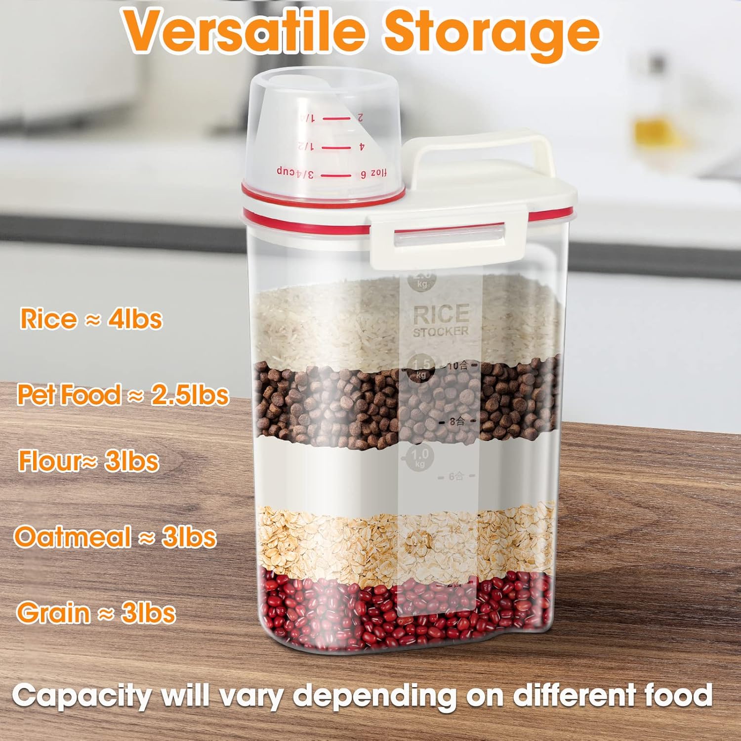 TBMax 2 Pack Rice Storage Containers 4 Lbs, Small Rice Dispenser with Measuring Cup, Cereal Containers Flour Bin, Kitchen Food Storage Container and Pantry Organizers, Pet Dog Cat Food Dispenser