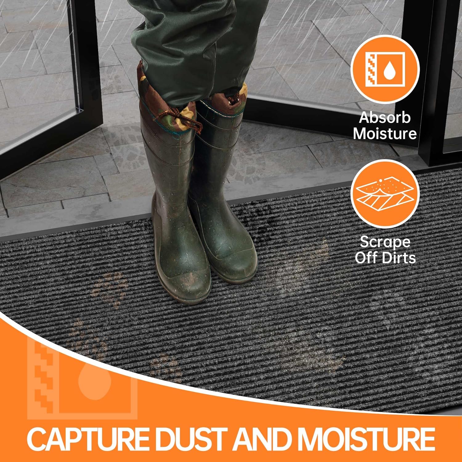 - Deep Grooves Capture Dirt and Moisture: Say goodbye to dirt and moisture tracked into your home. Our commercial door mat effectively captures dirt, mud and moisture from shoes, keeping your floors clean and protecting them from potential damage.