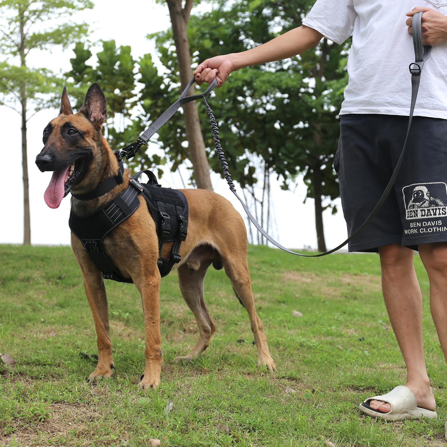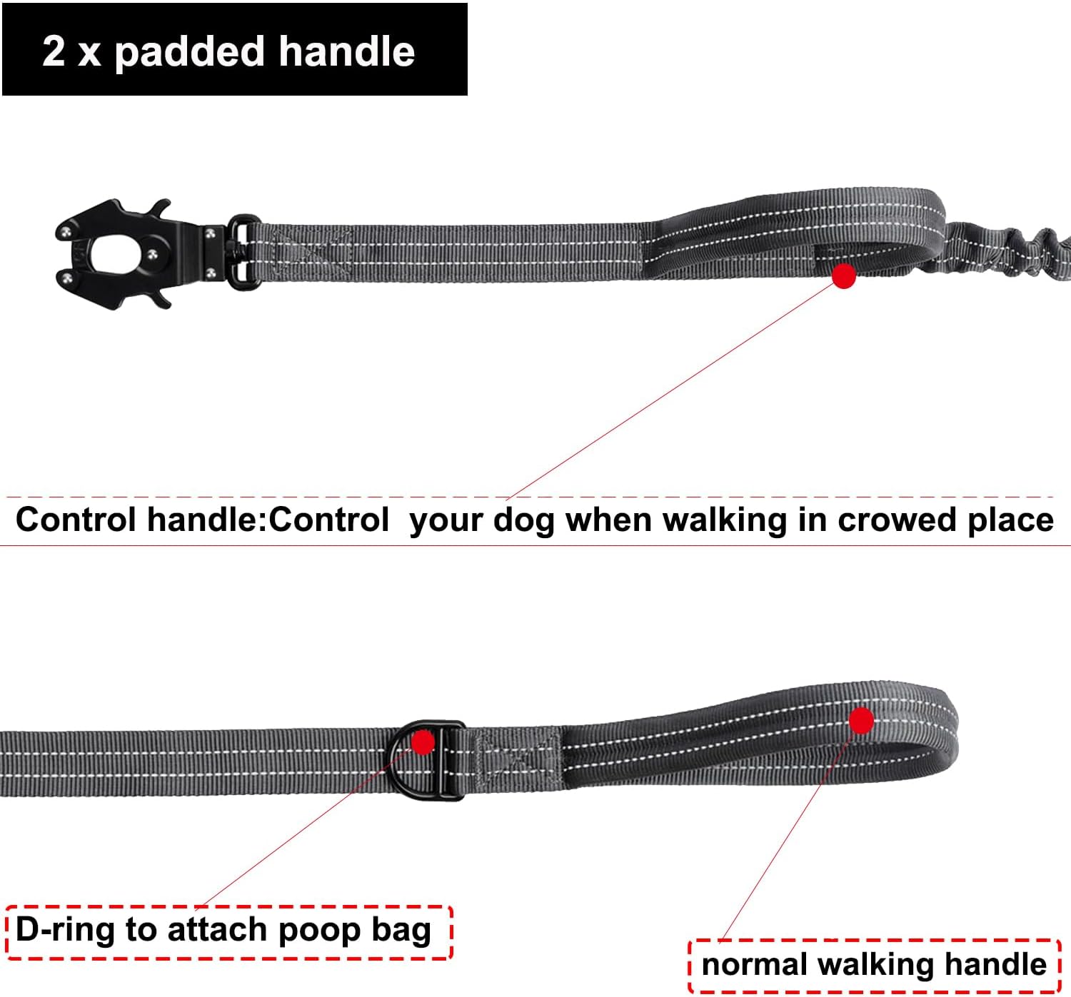 - [Shock-Absorbing ]:The front of the dog leash features an elastic design to help absorb sudden pulling forces, providing continuous reminders to the dog without yanking the leash. It also reduces your hand's pressure when the dog pulling.