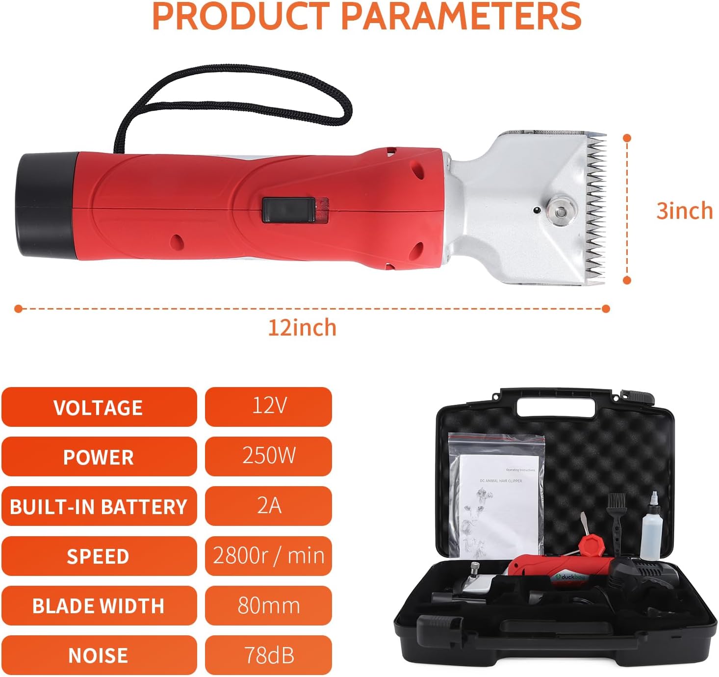 DUCKBOY Cordless Horse Clipper, Rechargeable Battery Powered Animals Shears Grooming Tools for Shaving Fur Wool Tool, Large Livestocks, Llamas, Cattle, Alpacas, Thick Coat Animals Trimmer