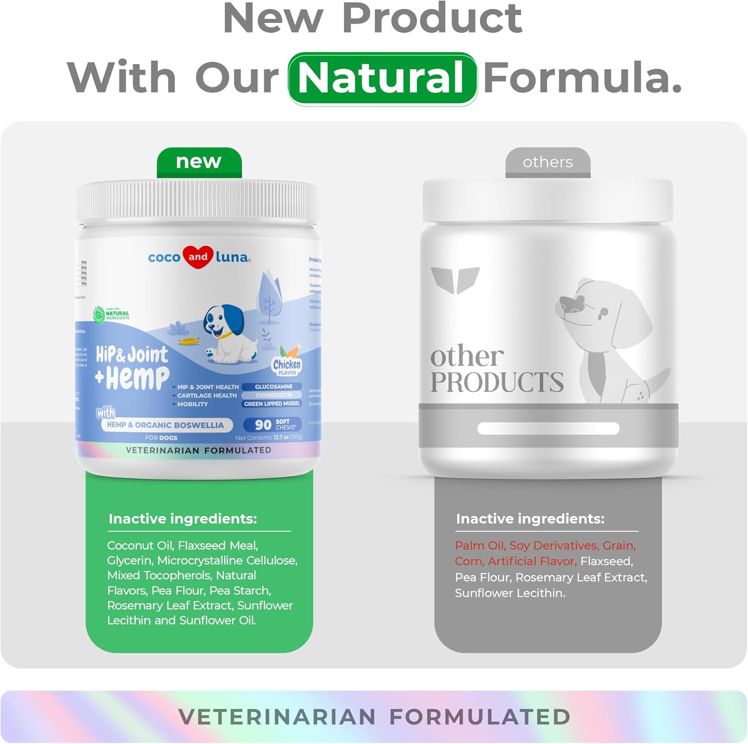 - Advanced Joint Health Formula: Our hip and joint support product for dogs combines powerful ingredients like Glucosamine, Green Lipped Mussel, and Hemp to maintain a normal inflammatory response, reinvigorate joint health, and promote joint mobility naturally.
