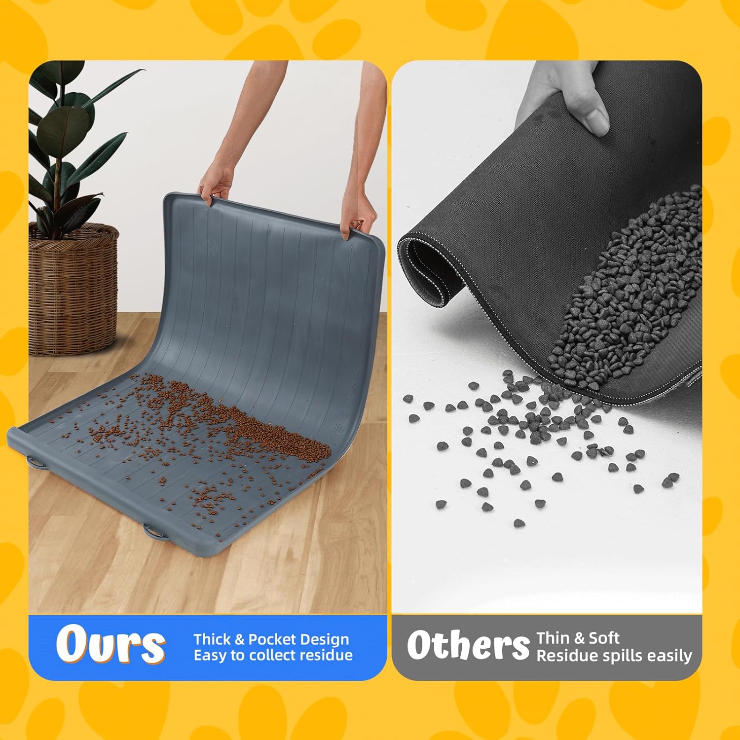 - EASY CLEANING WITH UNIQUE POCKET DESIGN: Say goodbye to messy floors with Yessotech's dog feeding mat! Our unique pocket design makes clean up a breeze. Simply pick up the mat from the other end and all the mess will fall into the pocket catch area.