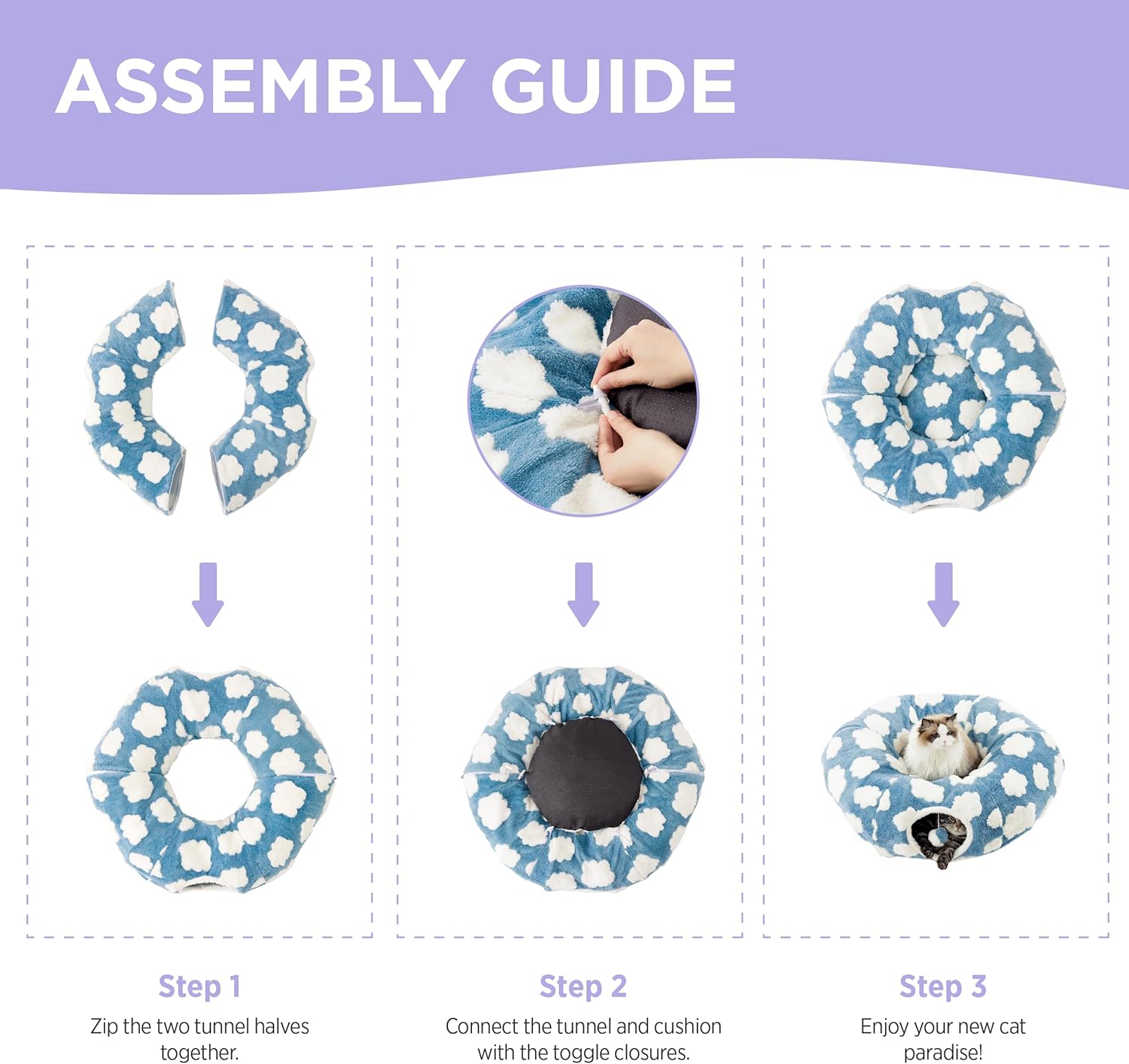 - Hassle-Free Maintenance: Designed with your convenience in mind, this cat tunnel bed is effortless to assemble and quick to store. The removable inner bed is machine washable, ensuring easy clean-up. Plus, the non-slip, studded bottom keeps the tunnel securely in place, providing your pet with a stable and comforting space to relax and play.