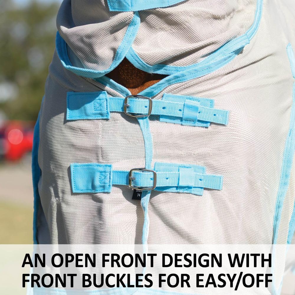 - ADVANCED COOLING TECHNOLOGY – Crafted with 300D soft polyester mesh blended with 45% polyester and 55% nylon cooling yarns, this fly sheet actively cools as your horse heats up, reducing sweat and ensuring comfort in hot weather.