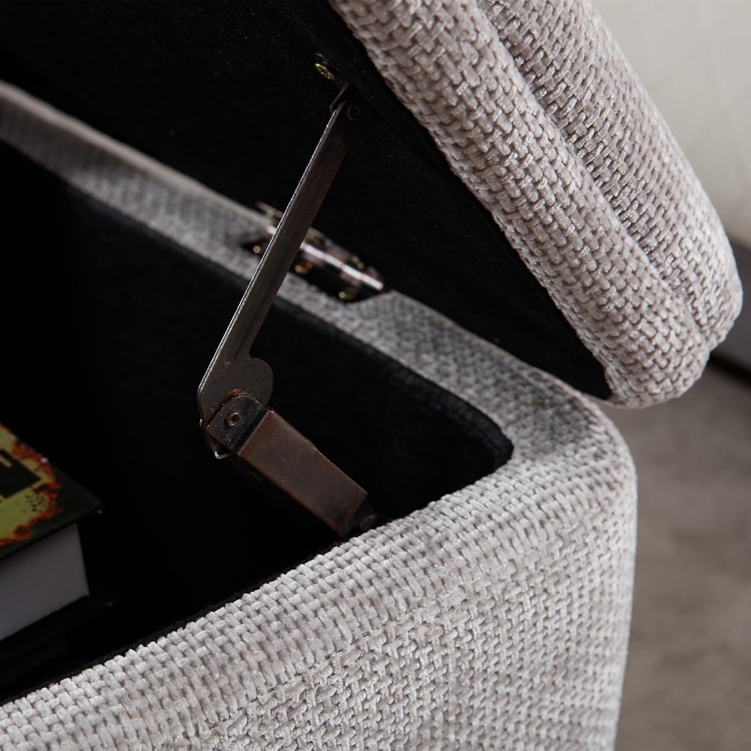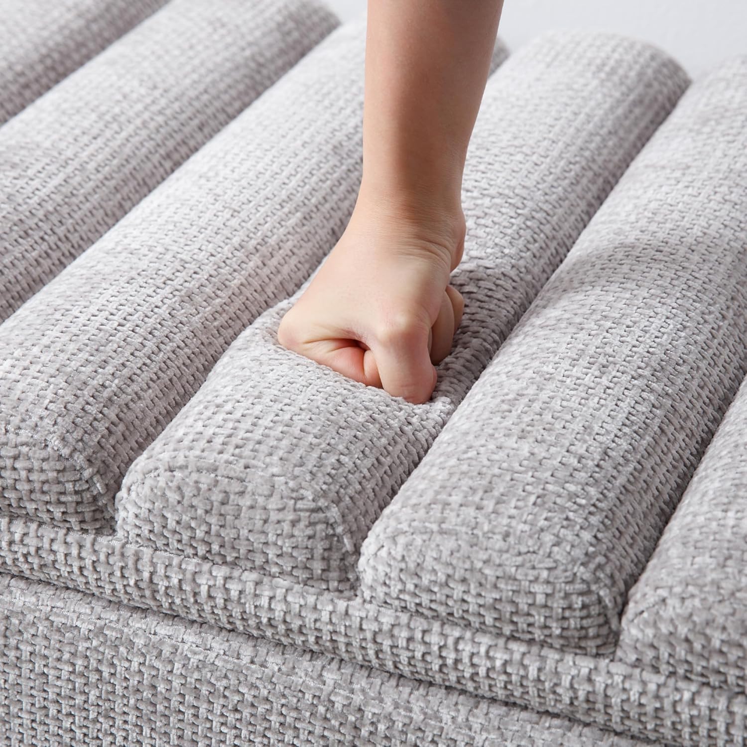Wavy Ottoman Storage Bench Multi-Functional Narrow Entryway Bench Elegant End of Bed Bench with Storage and Safty Hinge for Living Room Entryway Hallway Bedroom Boutique, Grey