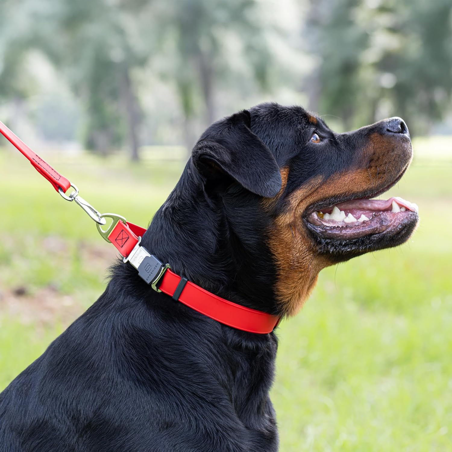 Dogline Biothane Waterproof Dog Collar with Herm Sprenger Black Stainless Steel Quick Release Buckle – Heavy Duty Tactical Durable Collar for Dogs – Comfortable and Safe Pet Collar W 1" L 15-25" Red