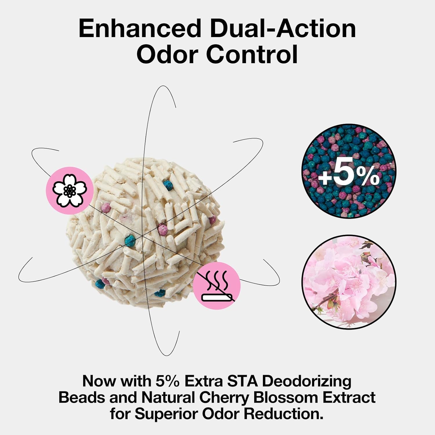 - 【Superior Odor Control】 This tofu litter is infused with natural cherry blossom plant extract, which can help mask unpleasant odors. Plus, extra added 5% deodorizing beads that effectively control odors, ensuring a fresh and odor-free space.