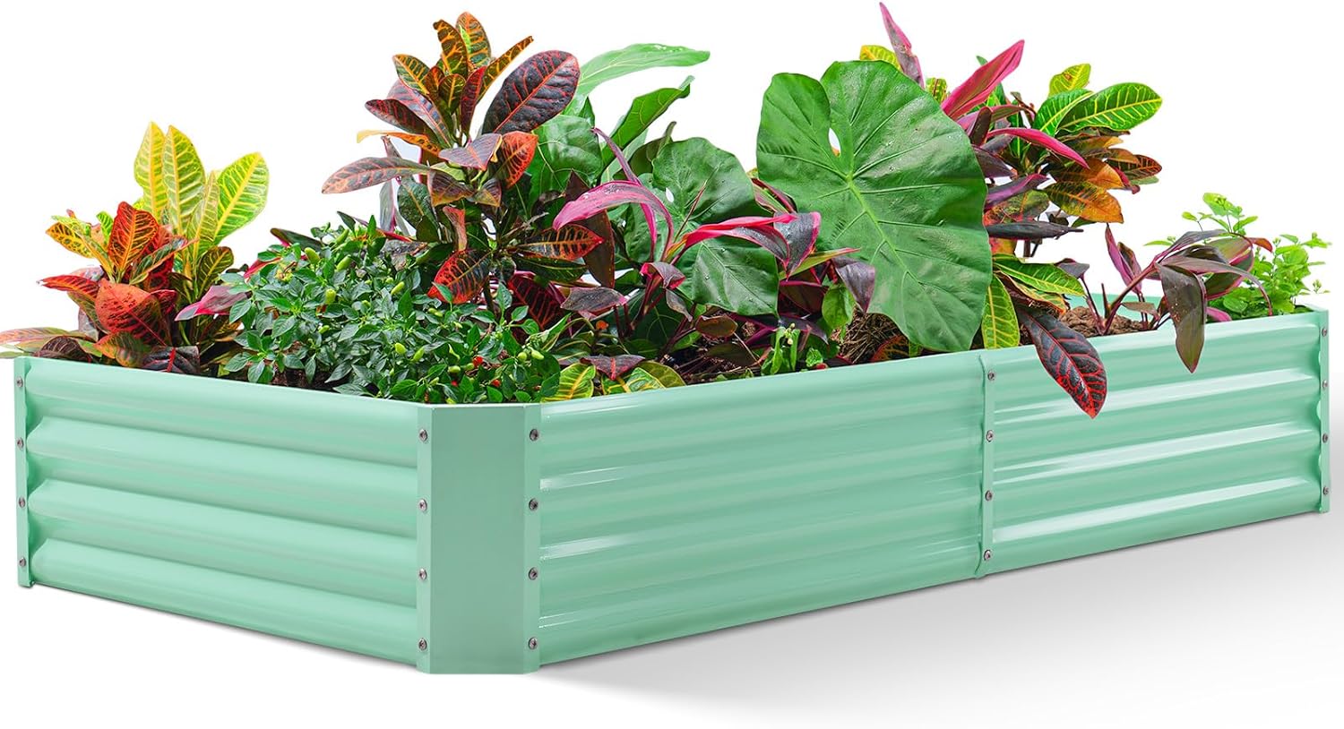 Land Guard 8×4×1ft Galvanized Metal Raised Garden Bed, Metal Planter Kit Box Outdoor for Deep-Rooted Vegetables, Flowers, Green and Herbs (Lime Green)…